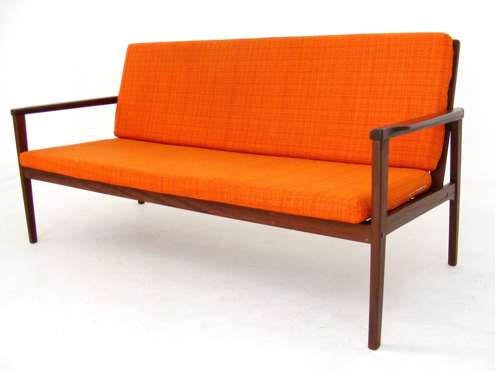 A mid-century couch manufactured for Simpla-Lux Holland. Circa 1960’s. Excellent condition with original orange wool cushions