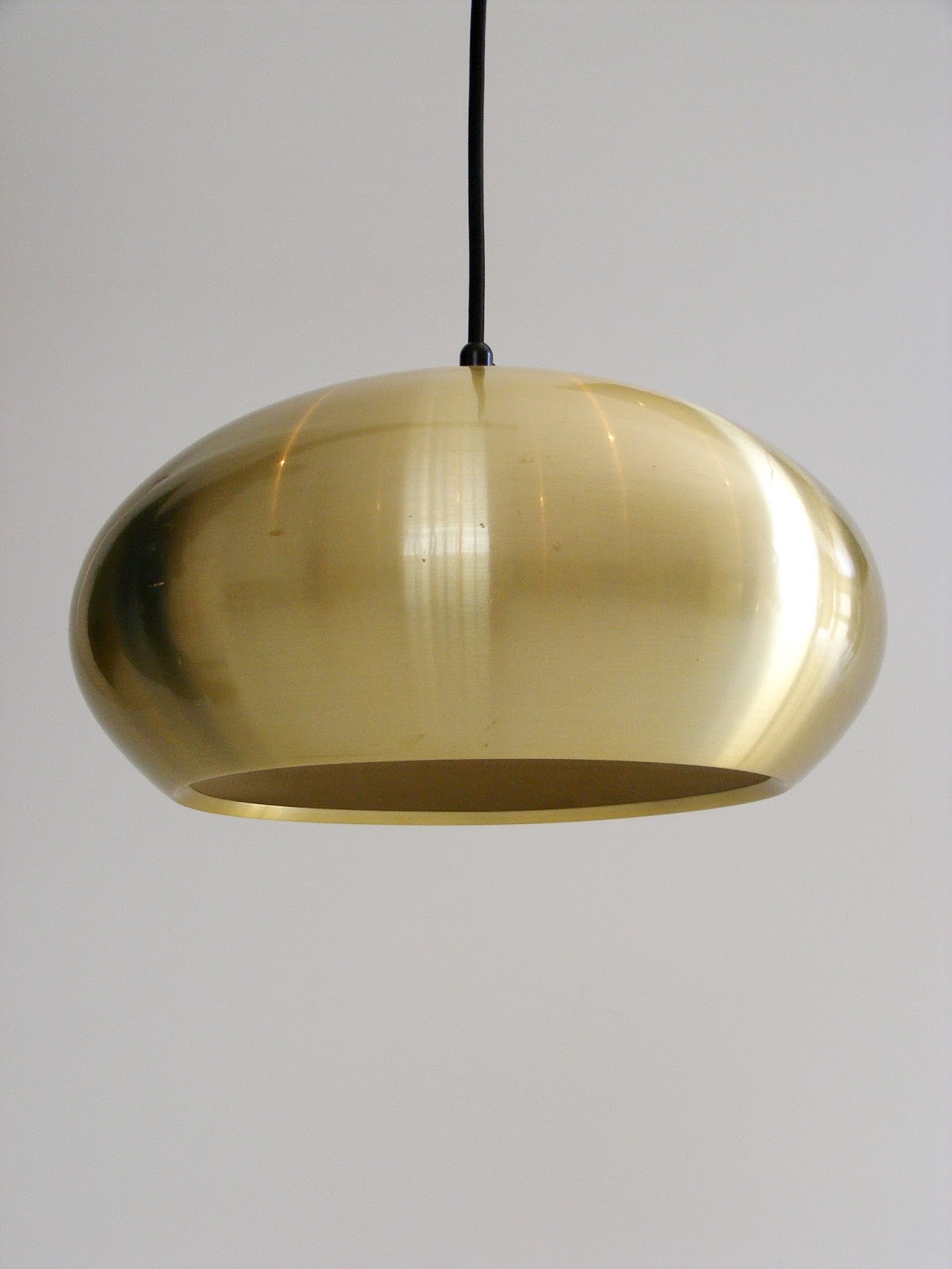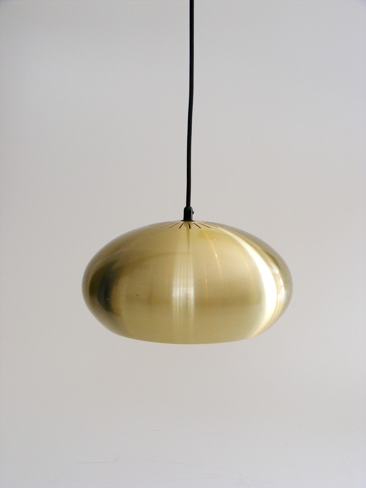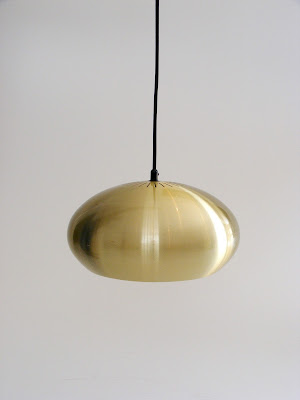 A brass coloured aluminium Medio pendant lamp, designed by Jo Hammerborg in 1966 for Fog and Morup