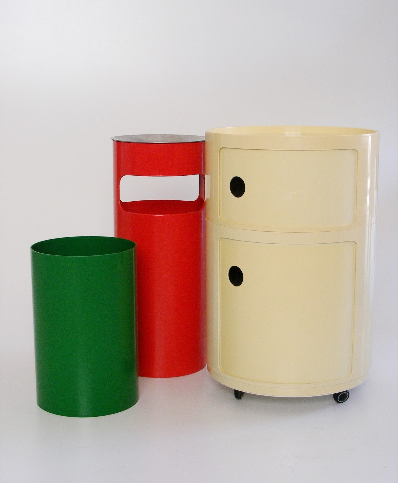 A bright red ashtray designed by Gino Colombini for Kartell (Italy) and manufactured by Kartell Africa. Good vintage condition with age appropriate scuff marks.  (Take the top off and it becomes an umbrella stand) Made of durable ABS plastic.