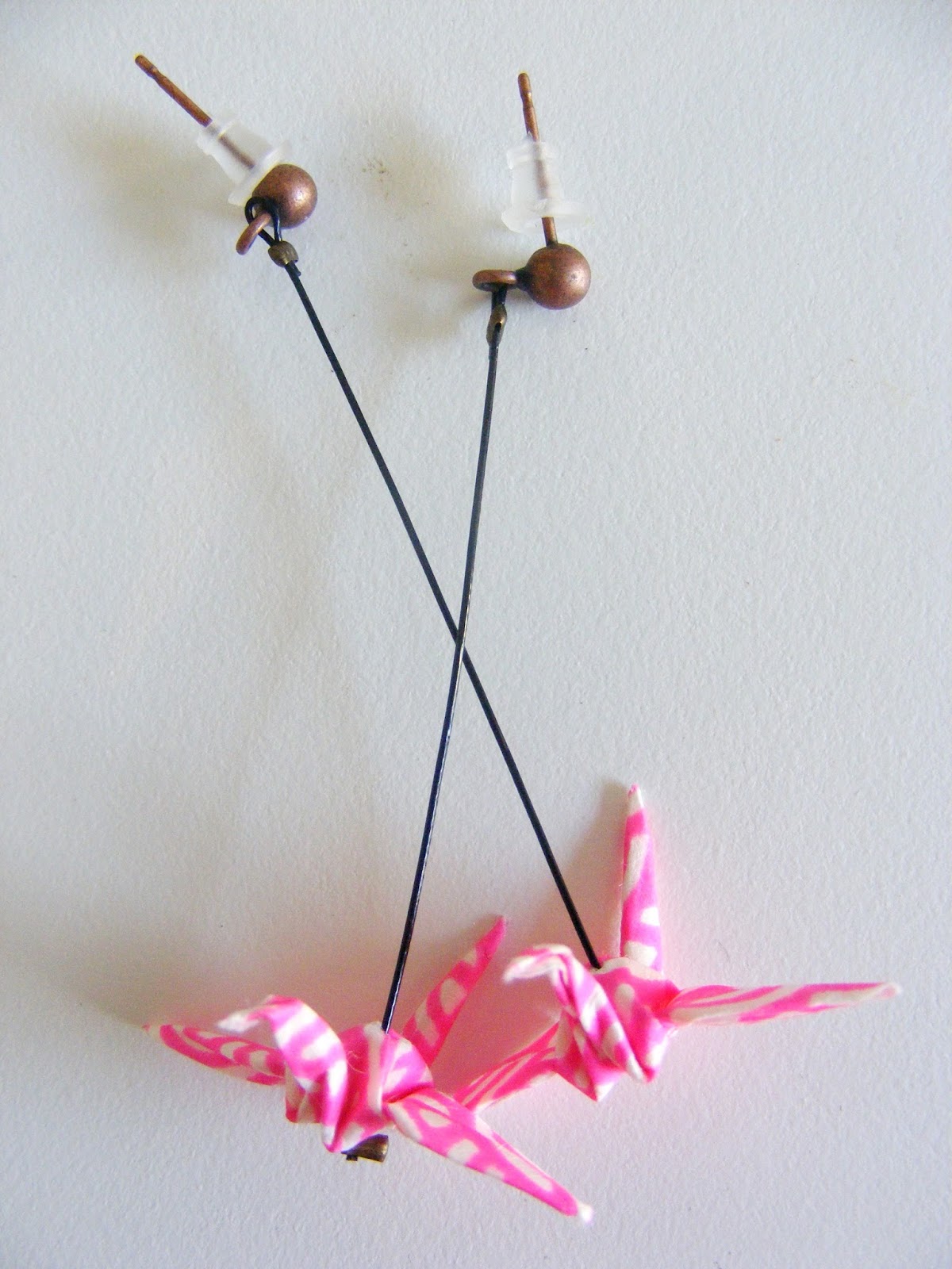 These beautiful origami bird earings are the most difficult things ever to photograph. They are keep fluttering in the wind or my hand shakes and the photo blurs! Rest assured they are the prettiest, most delicate little things, made from imported Japanese paper. I definitely want one in my Christmas stocking!