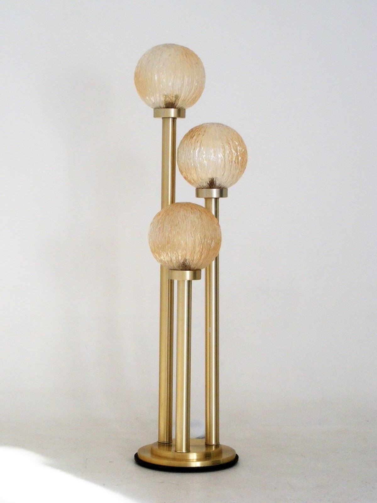 An exquisitely kitsch 3 columned gold anodised aluminium 1970’s floor lamp with its original bubbled shades. This lamp has been fully rewired including a foot switch and is in perfect working condition.